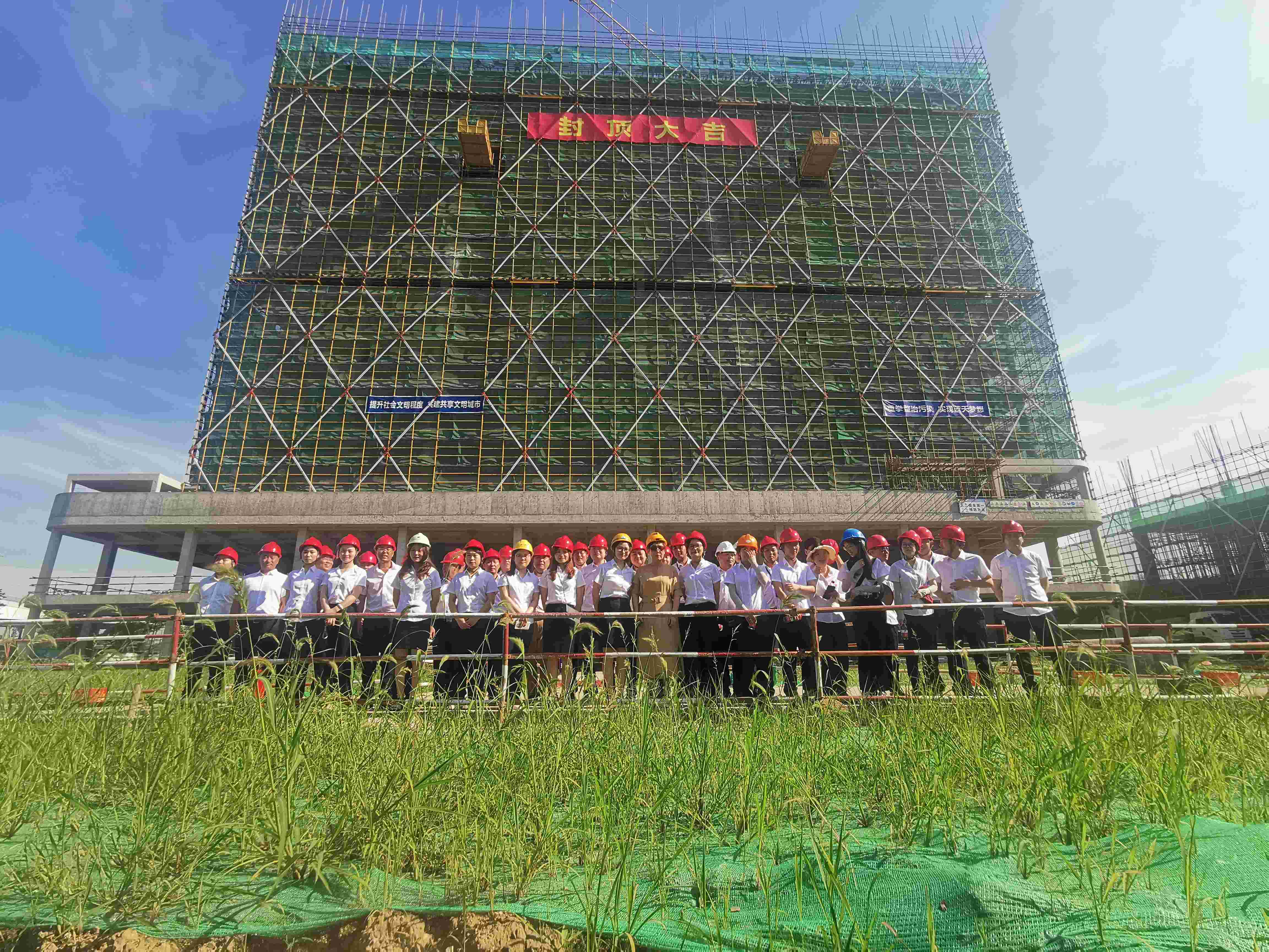 2022年6月27日,今年会科技仁和总部办公楼顺利封顶,公司领导一行现场参加了封顶仪式。